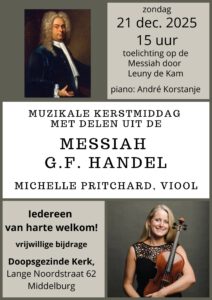 Dit jaar wordt het een muzikale middag. Ds. Leuny de Kam heeft zich verdiept in het leven en werk van de componist G.F. Handel. Zijn bekendste compositie is de Messiah. Leuny zal het ontstaan ervan uit de doeken doen en de bedoeling van tekstschrijver en componist.